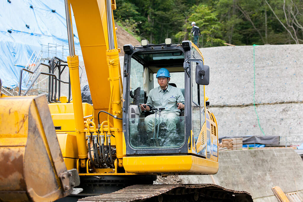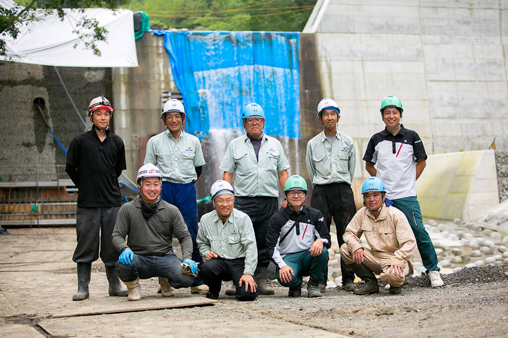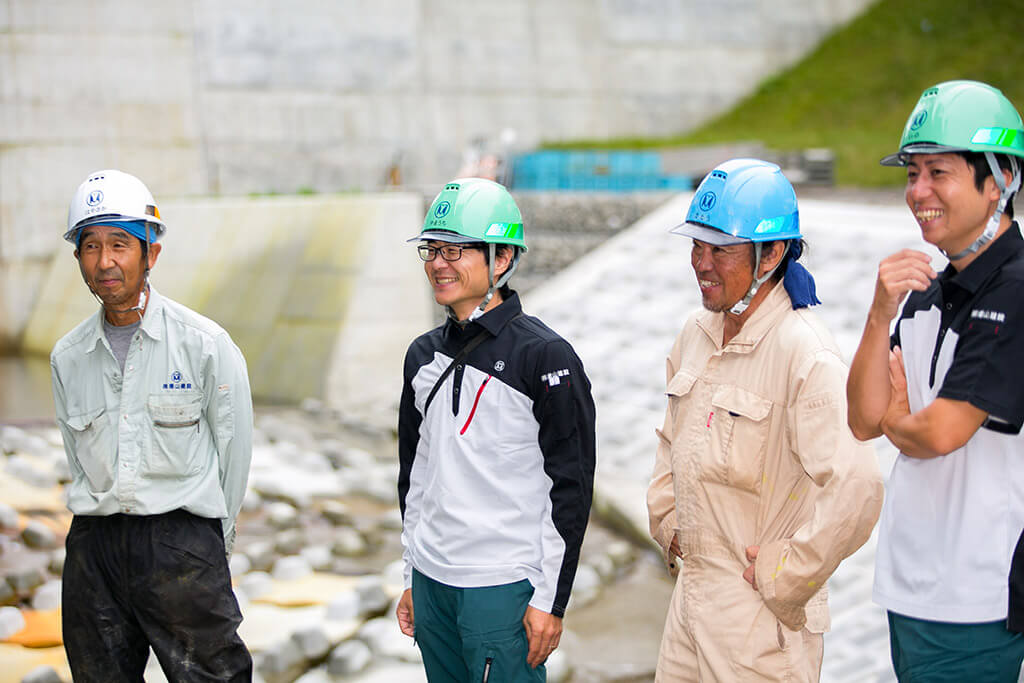 土木のプロ集団として地域の暮らしを守る仲間たち。一日一日の作業の積み重ねで、大きなものづくりを支えていく