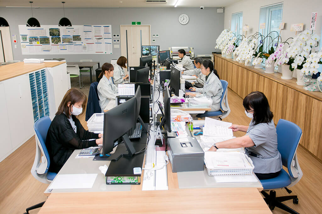 社内の事務職は8人。出産のため一度職場を離れ、戻ってきてから10年以上働いている女性社員もいる