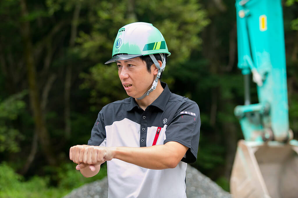 「重機オペレーターは、まず仕事の流れを覚えることが大切」と話す保岡さん。オペレーターも入社してから重機に乗り始める前の3、4年は、現場に慣れるために手作業を受け持つ